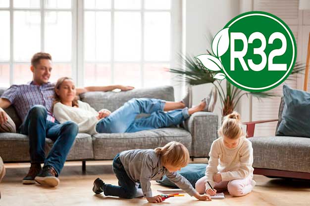 El gas R32 es un refrigerante del tipo HFC puro, con un índice de Potencial de Calentamiento Atmosférico (PCA/GWP) muy bajo y una gran eficiencia y poder de refrigeración, lo que lo ha convertido en el refrigerante escogido por muchos fabricantes para sus nuevos equipos de aire acondicionado y bombas de calor domésticas.